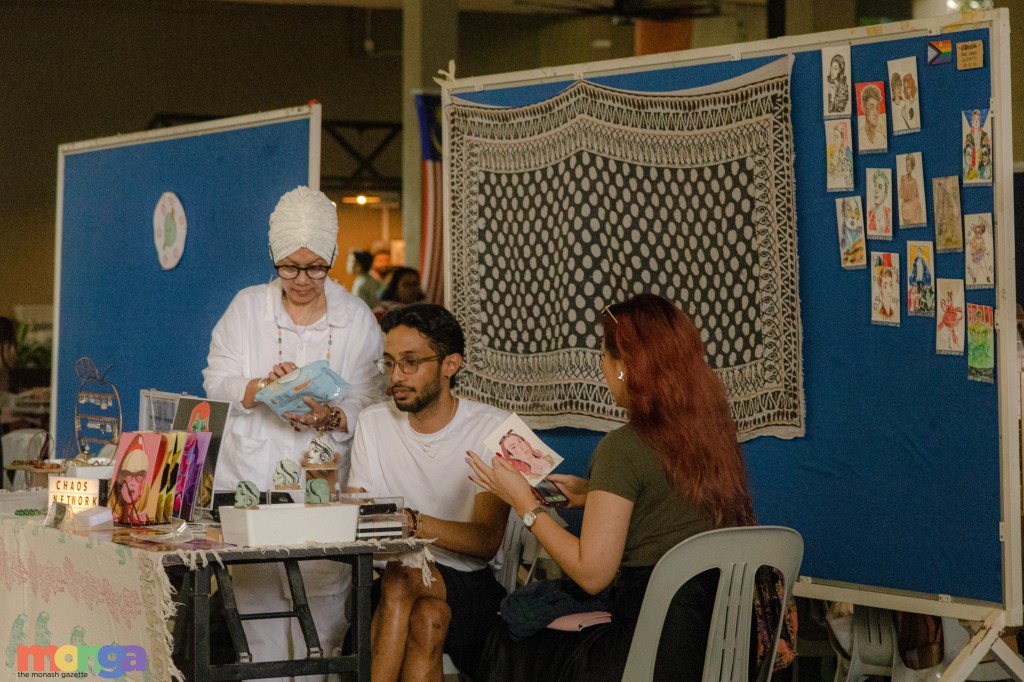 Friday, 10 am, I stepped onto campus to someone blasting Hayloft by Mother Mother—and I could smell the gays from the very entrance (this is a good thing). It was basically almost Sapot Lokal 2.0, but queerer. There were stalls selling keychains, stickers, badges, jewellery, clothes, even crocheted handicrafts and art prints! And there was food, like any respectable Monash bazaar was bound to have.
