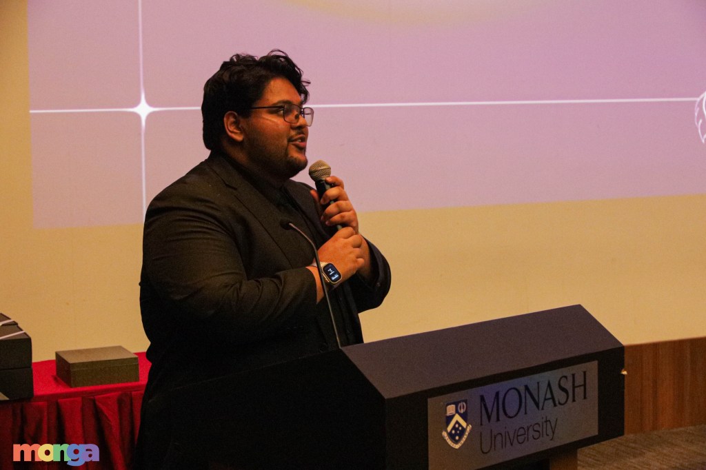 The ceremony opened with a warm welcome from the emcee, followed by a speech from a representative of the Monash Executive Management Committee, who spoke about MUSA’s 25-year journey – its growth, resilience, and its role as the heartbeat of student life. As their words echoed across the room, there was this quiet sense of pride in the air — a feeling that we were part of something much bigger than ourselves.
