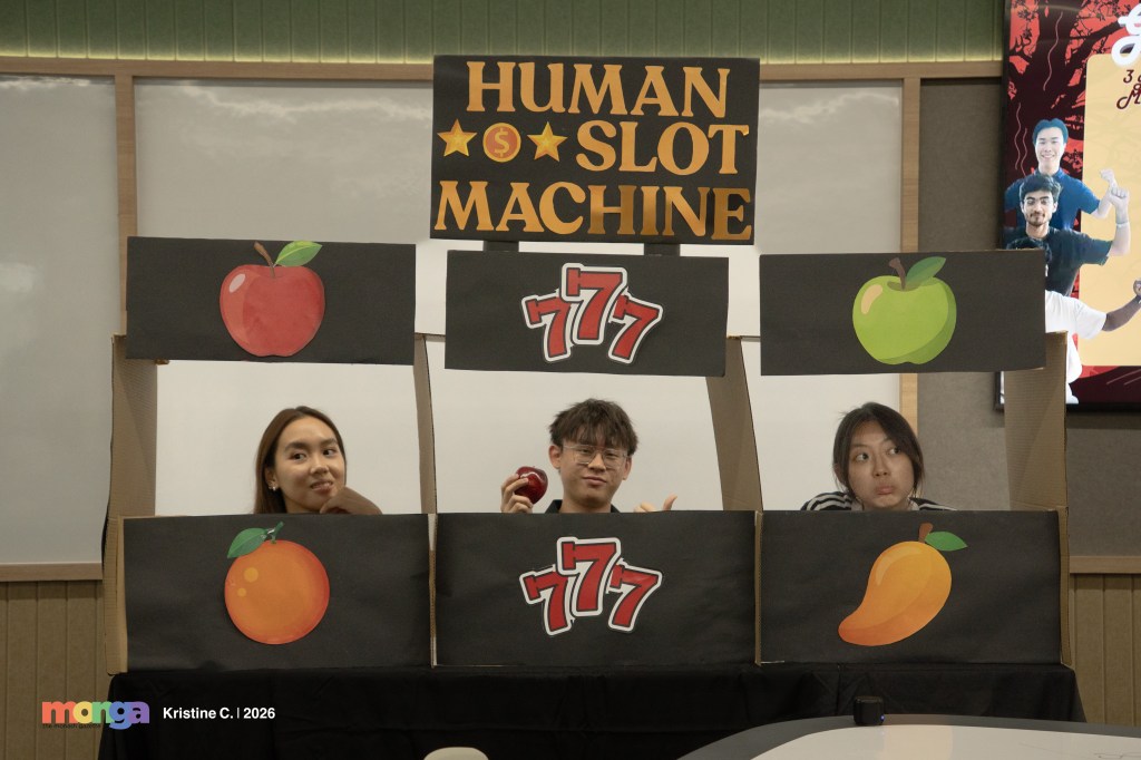 The events now then took a rowdy turn, as a huge slot machine was unveiled, powered by cardboard and three people with a bag of fruits, this was everyone’s opportunity to go all in with their points! The stakes were at an all time high as teams decided to put their competitive edge or the vibes on the line, and the slot machine did not disappoint with frequent jackpots. Emotions ran high and the atmosphere grew volatile with every spin, as one group’s triumph frequently became the catalyst for another’s resentment, bringing the energy from Genting to Monash.